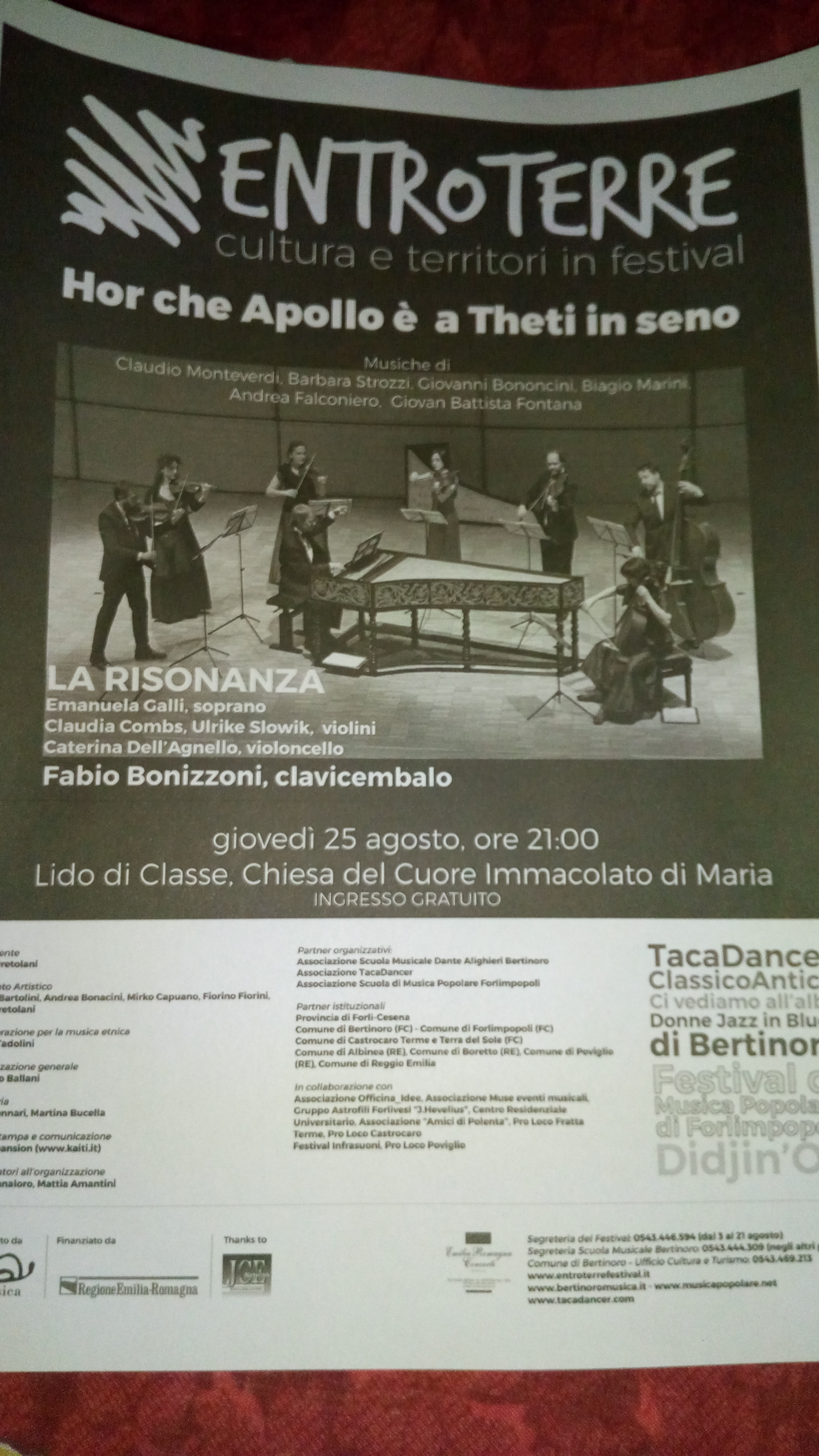 Ore 21,00 a Lido di Classe Ra presso Chiesa del cuore Immacolato di Maria. Concerto "Hor che apollo è a Theti in seno" gruppo La Risonanza. Programma vedi locandina allegata.